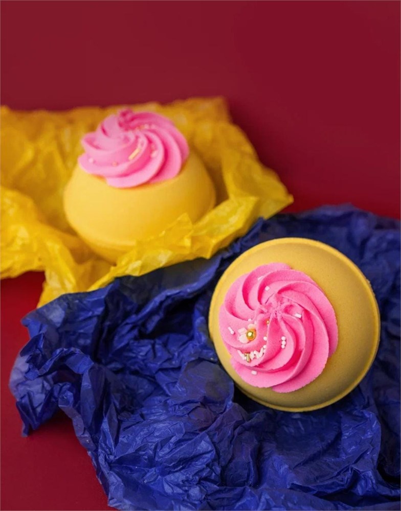 DUSHA Бомба-чаша для ванны "Лимонные меренги",жёлтая с наполнением из розовой пены, 320г
