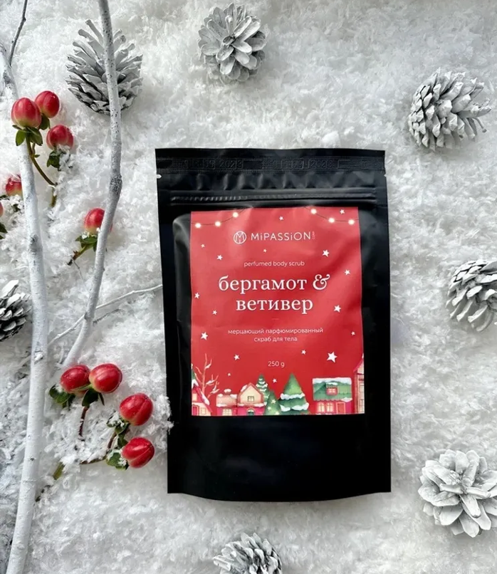 MiPASSION Мерцающий парфюмированный скраб Бергамот и Ветивер, 250 гр.