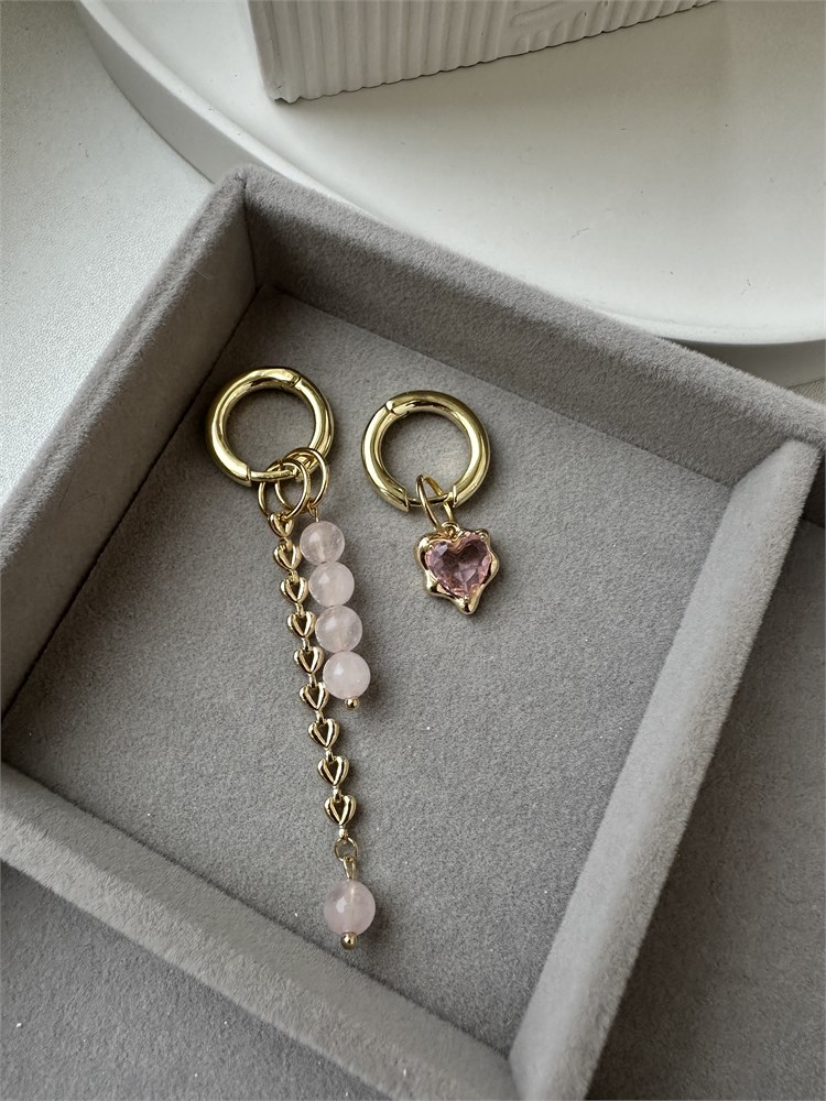 Серьги-Конго розовый кварц, цепочка +подвеска с фианитами (покрытие 24к)