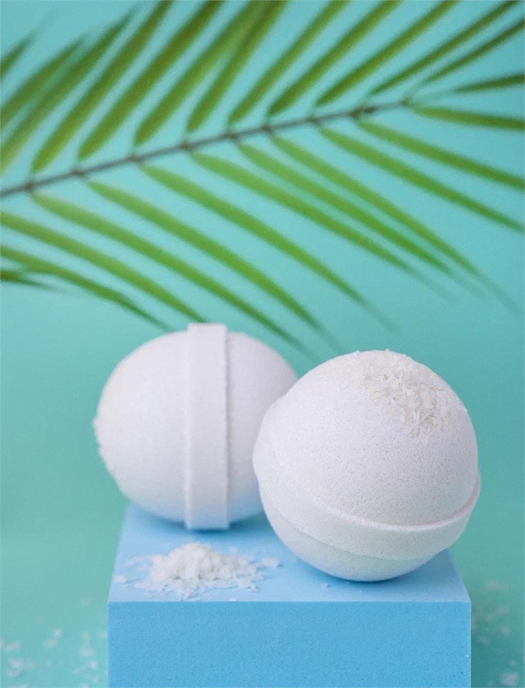 DUSHA Гейзер для ванны "Сумасшедший кокос", белый с кокосовой стружкой и блестками, 175г