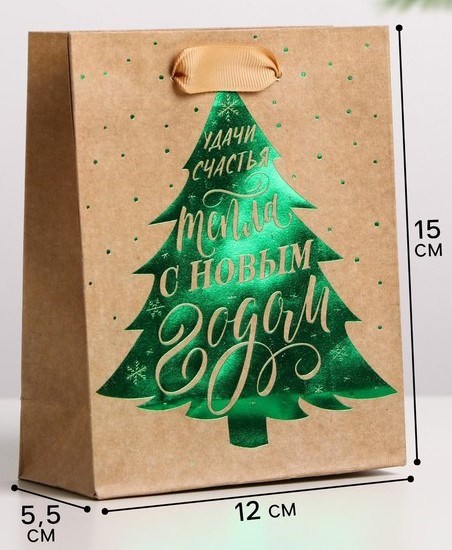 Пакет подарочный новогодний крафтовый «Ёлочка нарядная», S 12×15×5.5 см