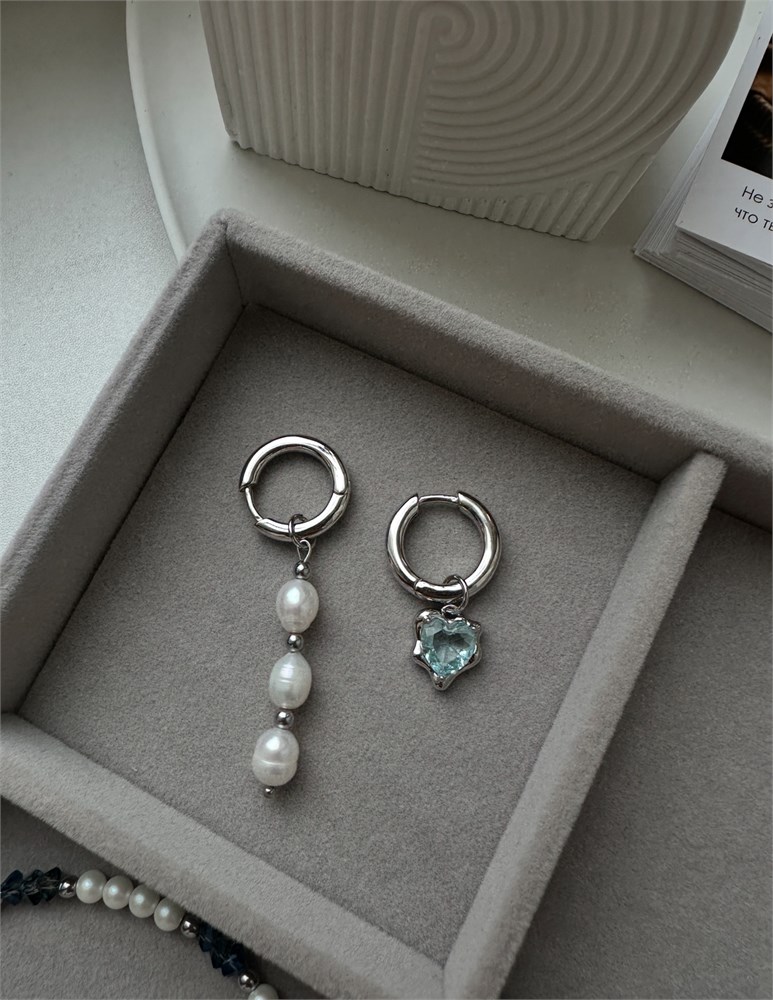 Серьги-Конго натуральный жемчуг, подвеска фианит