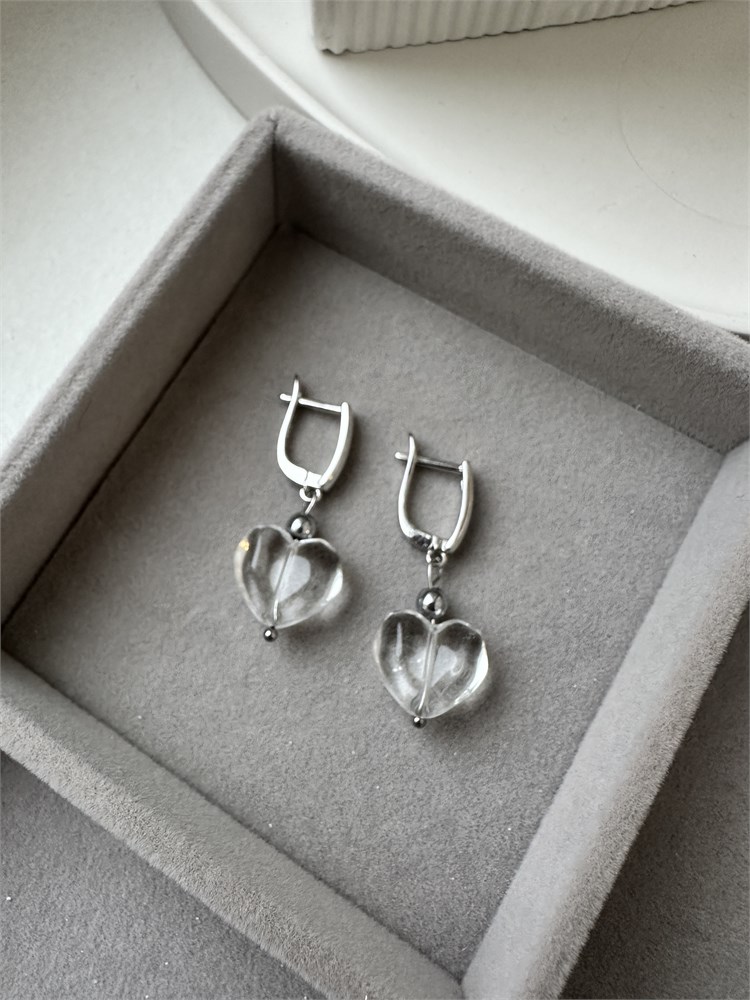 Серьги серебристые (родиевое покрытие) +прозр.сердца
