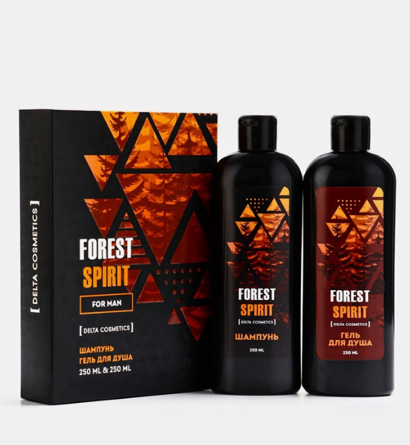 Delta Cosmetics Подарочный набор мужской FOREST SPIRIT, гель для душа 250 мл, шампунь 250 мл