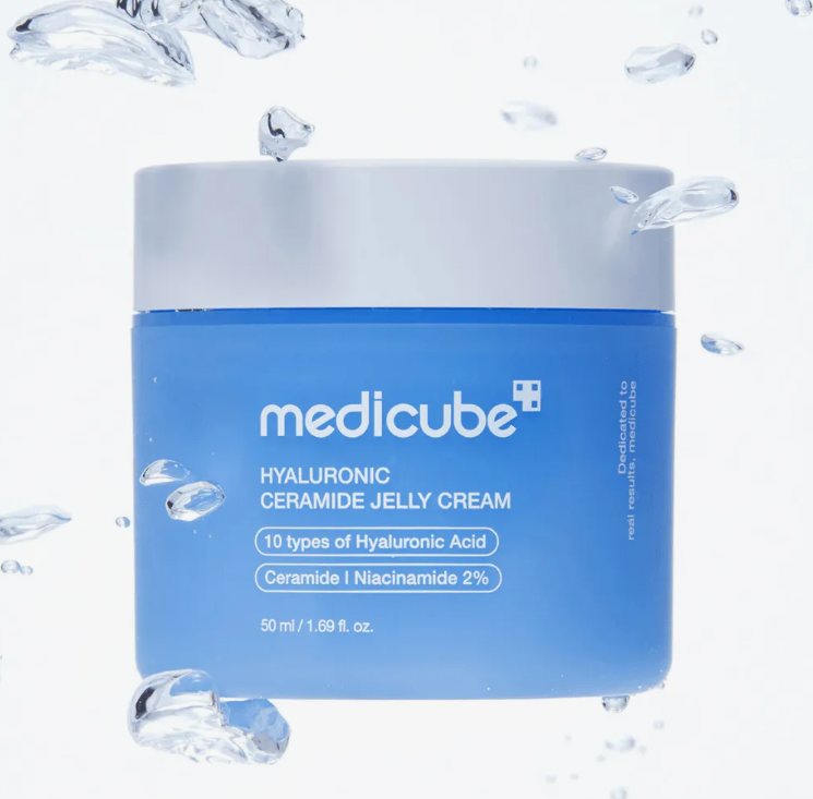 Крем-гель medicube Hyaluronic Ceramide Jelly Cream избавляет от сухости и чувства стянутости, препятствует шелушению, укрепляет защитный гидролипидный барьер.