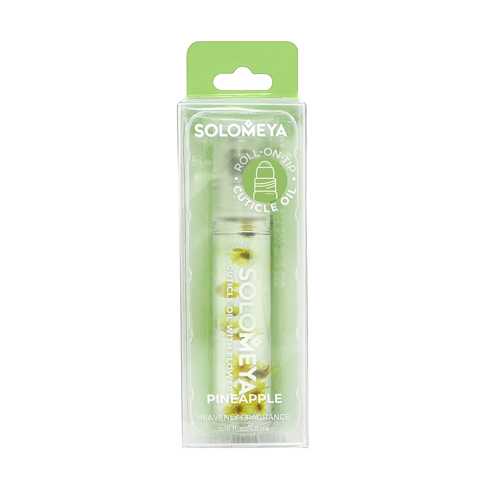 SOLOMEYA Масло для ногтей и кутикулы с роликовым аппликатором и цветами СОЧНЫЙ АНАНАС Cuticle Oil, 4,8 мл
